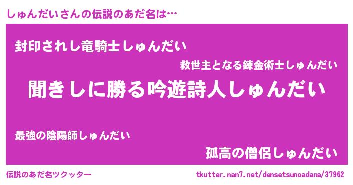 | ヒーロー風カッコイイあだ名 | 『仮面シュダー』『ネオシュンダイ』 |