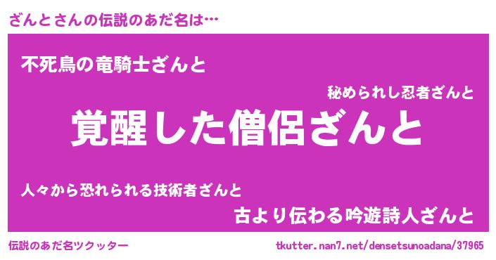 | 男性向けラノベタイトル風あだ名 | 『ざんとに滅ぼされるだけの簡単なお仕事です』 |