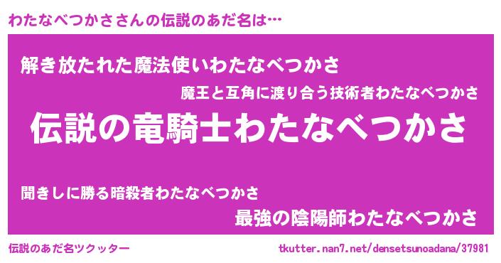 | 男性向けラノベタイトル風あだ名 | 『ワタナベツカサスレイヤー』 |