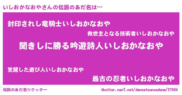 | 意味不明あだ名 | 『住所不定無職いしおかなおや(10歳)』 |