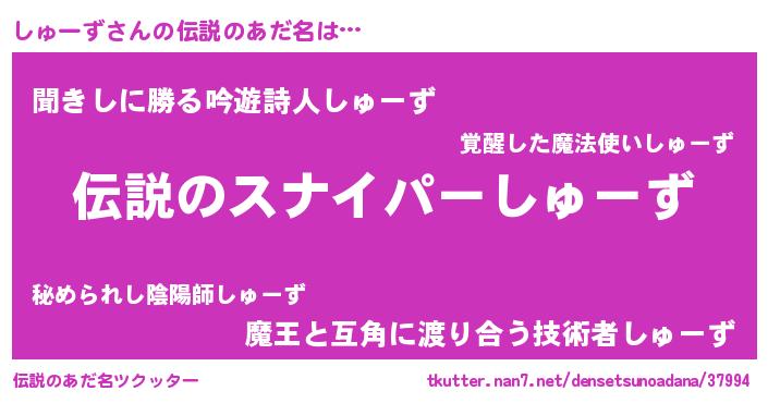 | 意味不明あだ名 | 『住所不定無職しゅーず(89歳)』 |