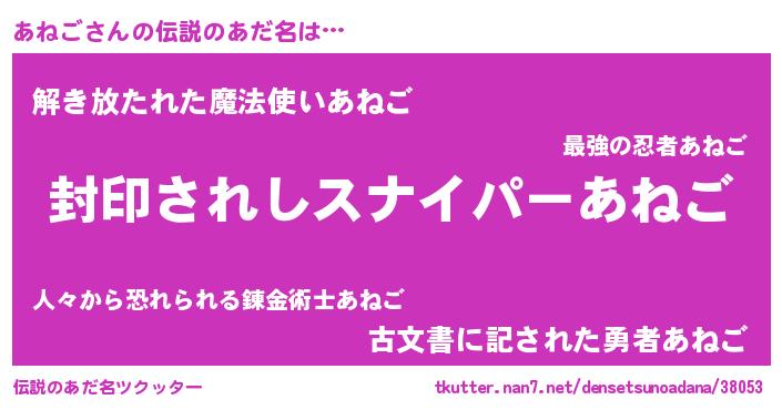 | ヒーロー風カッコイイあだ名 | 『究極戦士アネゴ』『スーパーアネゴ』 |