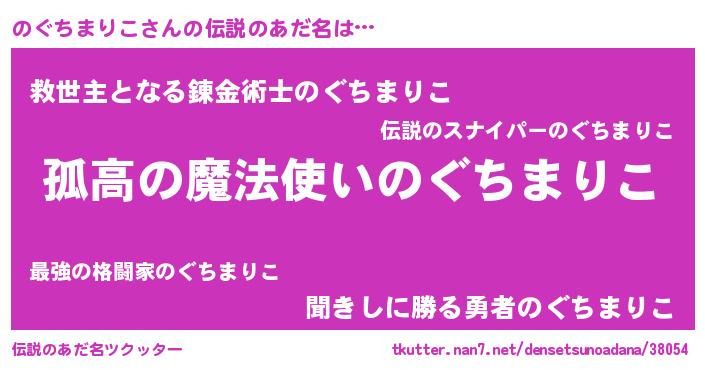 | 男性向けラノベタイトル風あだ名 | 『魔弾の王とのぐちまりこ』 |