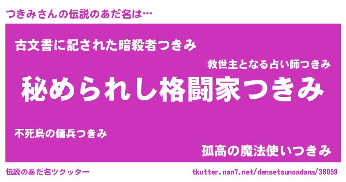 | 男性向けラノベタイトル風あだ名 | 『はたらくつきみさま!』『緋弾のツキミ』 |