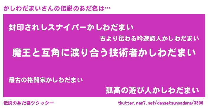 | ヒーロー風カッコイイあだ名 | 『愛の使者かしわだまい』『黄金騎士カシ』 |