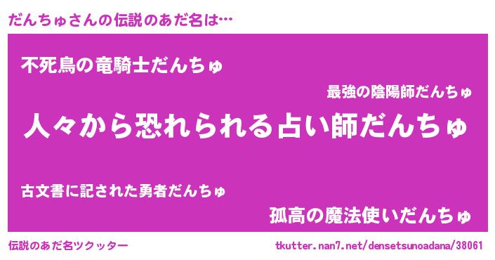 | ヒーロー風カッコイイあだ名 | 『仮面ダンダー』『超時空戦士ダンチュ』 |