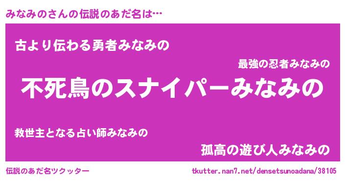 | ヘコむあだ名 | 『みなもー』『みなみの(苦笑)』 |