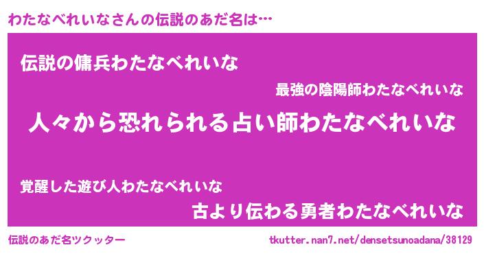 | 女子向けラノベタイトル風あだ名 | 『わたなべれいななんてお断りですっ。』 |