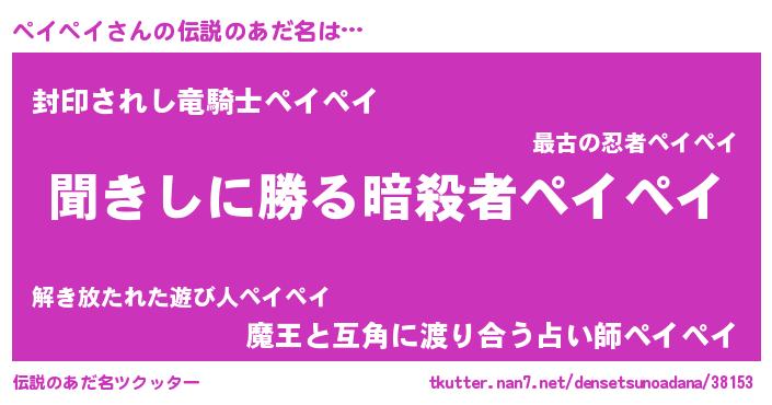 | 意味不明あだ名 | 『自称ペイペイ』『永久保存ペイペイ』 |