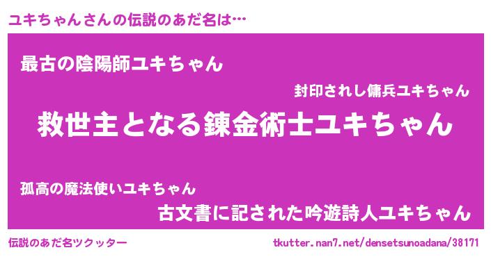| ポケモン風あだ名 | 『ユックウザ』『ユキチダネ』 |