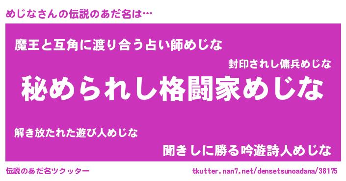 | 意味不明あだ名 | 『住所不定無職めじな(6歳)』『自称めじな』 |