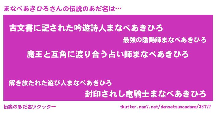 | ヒーロー風カッコイイあだ名 | 『友情の使者まなべあきひろ』 |