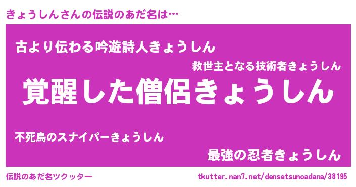 | ヘコむあだ名 | 『きょ太郎』『きょうしん(苦笑)』 |