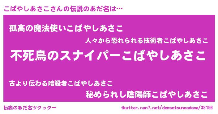 | ヒーロー風カッコイイあだ名 | 『スーパーコバヤシアサコ』 |