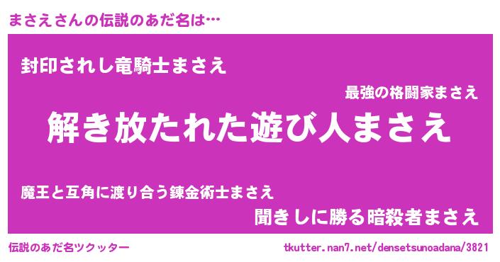 | 意味不明あだ名 | 『とにかく怪しいまさえ』 |