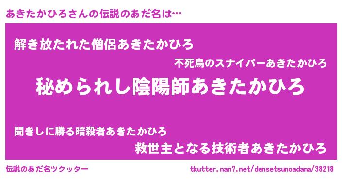| 女子向けラノベタイトル風あだ名 | 『あきたかひろなんてお断りですっ。』 |