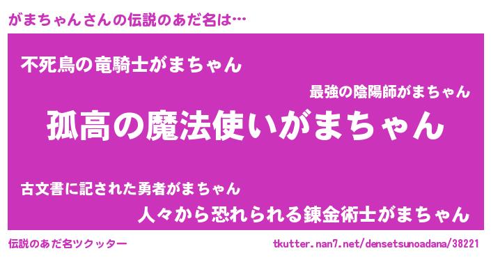 | 胡散臭い通販商品みたいなあだ名 | 『信頼と実績のサプリメント…その名も「がまちゃん」』 |