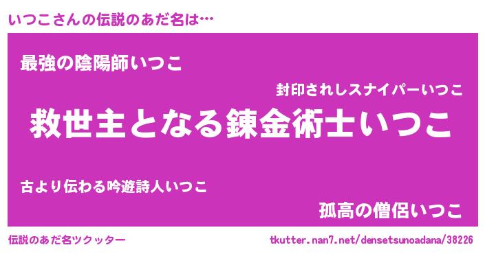 | ヒーロー風カッコイイあだ名 | 『究極戦士イツコ』『慈愛の使者いつこ』 |