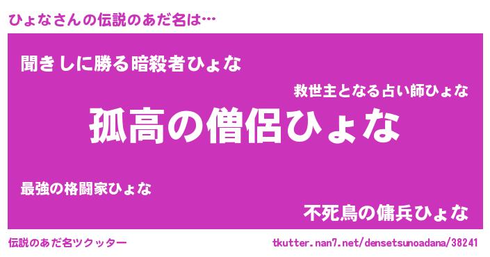 | 意味不明あだ名 | 『とにかく怪しいひょな』『自称ひょな』 |