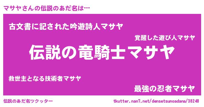| ヒーロー風カッコイイあだ名 | 『仮面マサダー』『スーパーマサヤ』 |