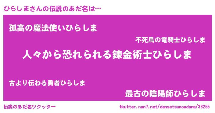 | ヒーロー風カッコイイあだ名 | 『友情の使者ひらしま』『暗黒騎士ヒラ』 |