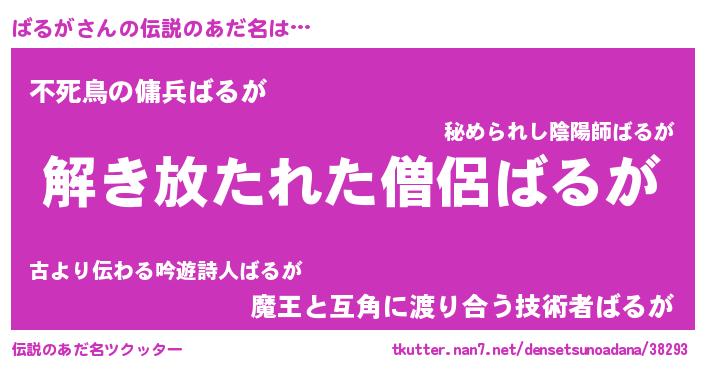 | ヒーロー風カッコイイあだ名 | 『仮面バルダー』『銀牙騎士バル』 |
