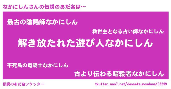 | 男性向けラノベタイトル風あだ名 | 『転生したらなかにしんだった件』 |