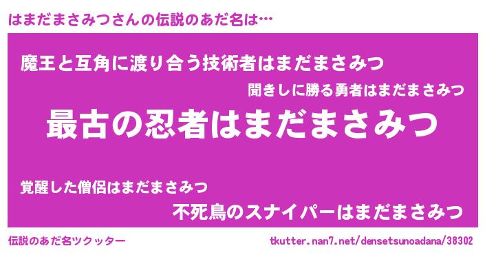 | 意味不明あだ名 | 『住所不定無職はまだまさみつ(62歳)』 |