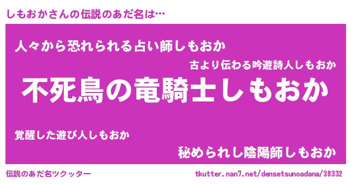 | 意味不明あだ名 | 『ペロリンしもおか』『自称しもおか』 |
