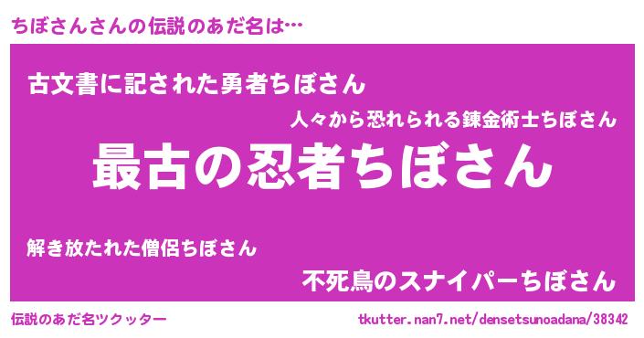 | ヒーロー風カッコイイあだ名 | 『ウルトラちぼさんマン』『ネオチボサン』 |