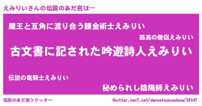 | 意味不明あだ名 | 『自称えみりい』『永久保存えみりい』 |