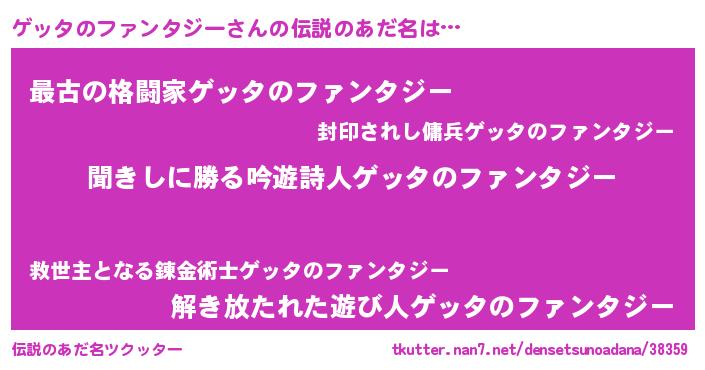 | 男性向けラノベタイトル風あだ名 | 『緋弾のゲッタノファンタジー』 |