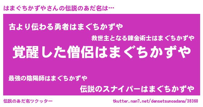 | 男性向けラノベタイトル風あだ名 | 『はまぐちかずやの嫁は女の子じゃないと思った?』 |