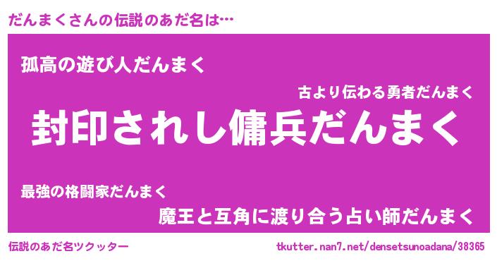 | 胡散臭い通販商品みたいなあだ名 | 『億万長者になれる水晶球…その名も「だんまく」』 |