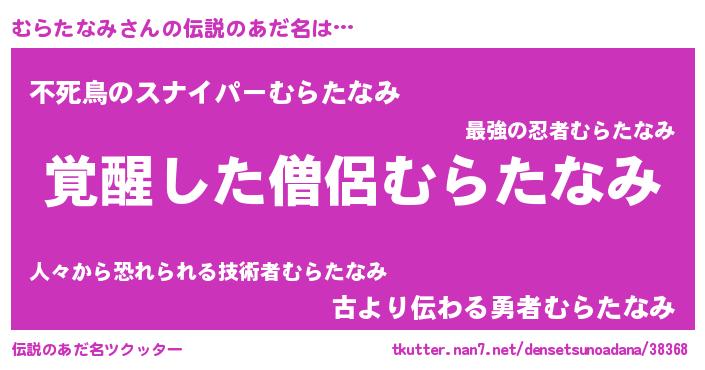 | 女子向けラノベタイトル風あだ名 | 『むらたなみ様がみてる』 |