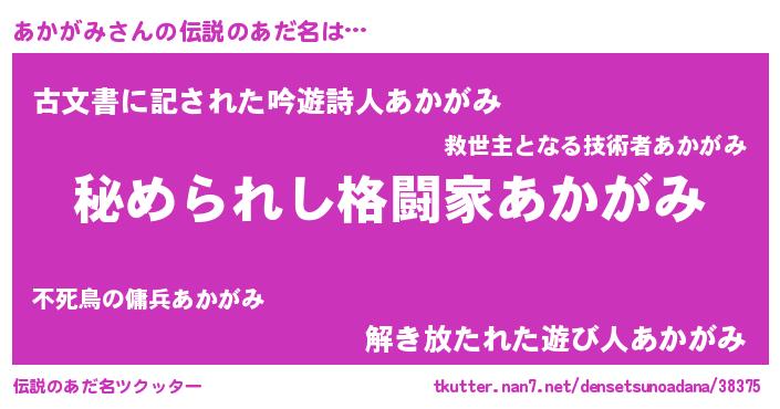 男性向けラノベタイトル風あだ名 | 『アカガミスレイヤー』 |