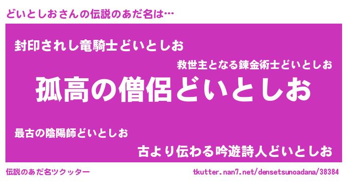 | 女子向けラノベタイトル風あだ名 | 『どいとしおは平凡を望む』 |