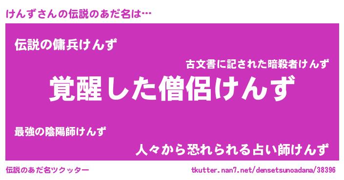 | ヒーロー風カッコイイあだ名 | 『究極戦士ケンズ』『魔戒騎士ケン』 |