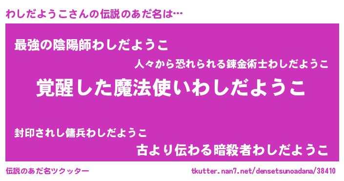 | 男性向けラノベタイトル風あだ名 | 『わしだようこ~年齢イコール彼女いない歴の魔法使い~』 |