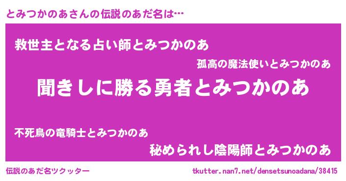 | 意味不明あだ名 | 『永久保存とみつかのあ』 |