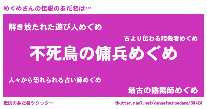 | 男性向けラノベタイトル風あだ名 | 『魔法科高校のめぐめ』『めぐめの憂鬱』 |