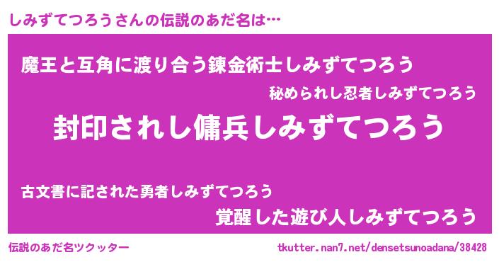 | ヒーロー風カッコイイあだ名 | 『最強戦士シミズテツロウ』 |