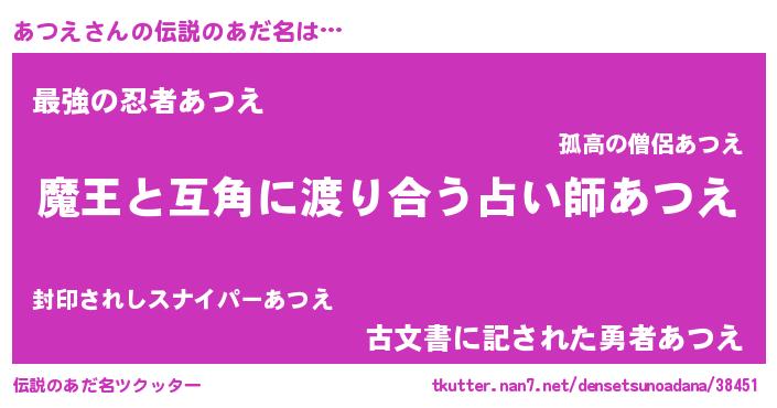 | ヒーロー風カッコイイあだ名 | 『愛の使者あつえ』『ウルトラあつえマン』 |
