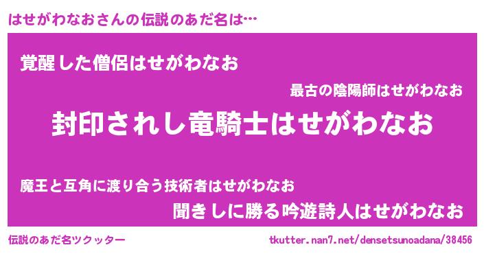 | 男性向けラノベタイトル風あだ名 | 『ハセガワナオアートオンライン』 |