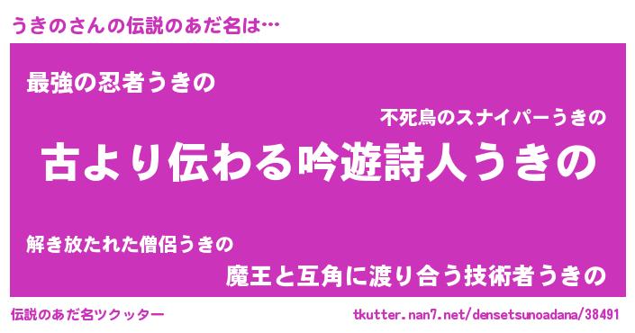 | 男性向けラノベタイトル風あだ名 | 『うきのという概念が存在しない退屈な世界 』 |