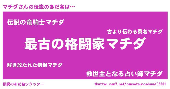 | ヒーロー風カッコイイあだ名 | 『ウルトラマチダマン』『究極戦士マチダ』 |