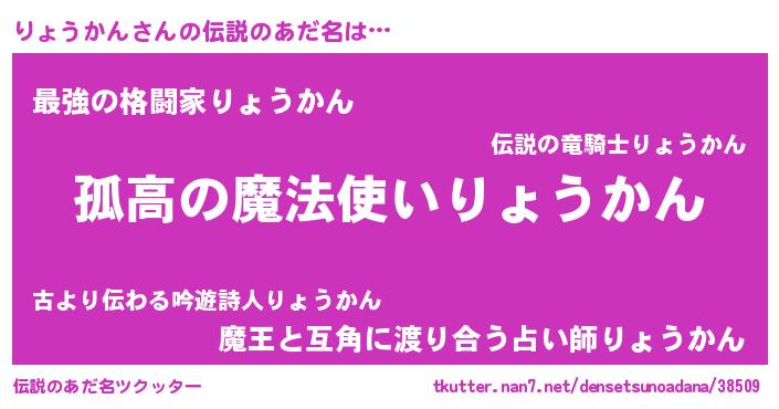 | 意味不明あだ名 | 『とにかく怪しいりょうかん』 |