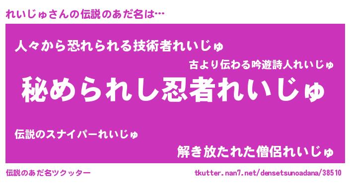 | 意味不明あだ名 | 『エリンギ科れいじゅ属』『自称れいじゅ』 |