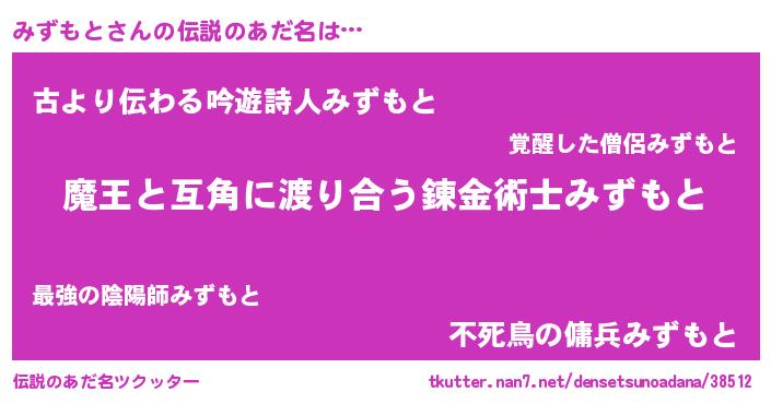 | ヒーロー風カッコイイあだ名 | 『友情の使者みずもと』『仮面ミズダー』 |