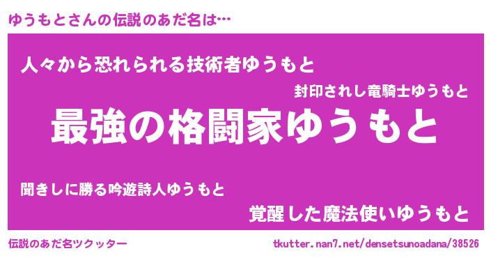 | 男性向けラノベタイトル風あだ名 | 『ゆうもとに滅ぼされるだけの簡単なお仕事です』 |